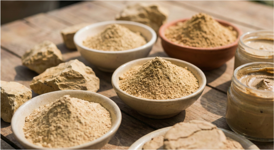 Solum Fullonum, commonly known as Multani Mitti or Fuller’s Earth, is a natural cleansing clay that has been used for centuries to purify hair and remove dirt and excess oil from the skin. Similar in properties to bentonite clay, it is naturally rich in magnesium chloride and calcium bentonite, offering multiple cleansing and soothing benefits for both hair and skin.
