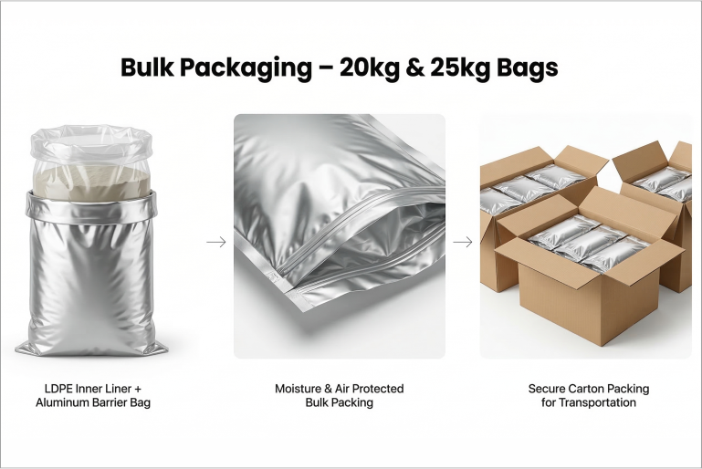Our bulk packaging ensures the product remains safe, fresh, and contamination-free during shipment.